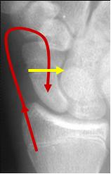 proximal pole enters at