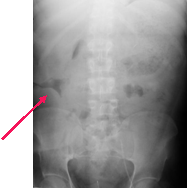 the RLQ. This is caused by a soft tissue mass impressing the bowel